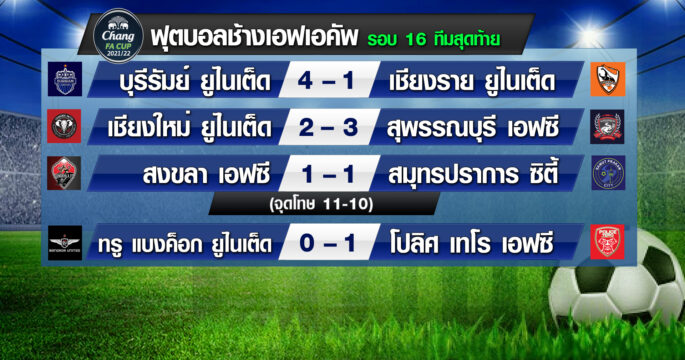 ไมคอน มาเกวซ ทำคนเดียว 2 ประตู ให้บุรีรัมย์ ยูไนเต็ด เอาชนะ ลีโอ เชียงราย ยูไนเต็ด แชมป์เก่า 4-1 ผ่านเข้ารอบ 8 ทีมสุดท้าย ฟุตบอลช้างเอฟเอคัพ