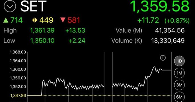 ตลาดหลักทรัพย์ ปิดวันนี้ที่ระดับ 1,359.58 จุด เพิ่มขึ้น 11.72 จุด (+0.87%) มูลค่าการซื้อขาย 41,354.56 ล้านบาท