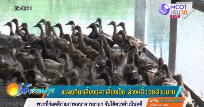 นายสนั่น บุญมาก วัย 56 ปี อดีตเจ้าของโรงงาน ผันตัวมาเป็นเกษตรกร เลี้ยงปลาและเป็ดไข่ สร้างรายได้ประมาณ 15,000-16,000 บาทต่อวัน สามารถปลดหนี้ได้จนหมด