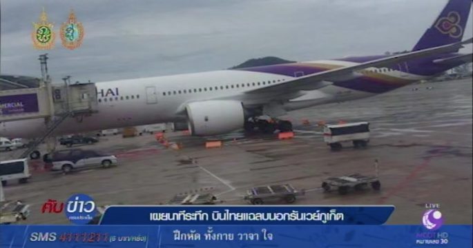 เครื่องบินโดยสารไถลออกนอกรันเวย์สนามบินภูเก็ตขณะลงจอด ล้อยางด้านซ้ายแตก 4 เส้น แต่กัปตันสามารถนำเครื่องเข้าสู่หลุมจอดได้อย่างปลอดภัย