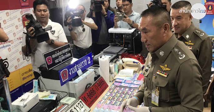 กทม.-8 พ.ย.- ตำรวจ 191 จับเจ้าของเพจรับปลอมใบขับขี่ บัตรประชาชน สร้างความเสียหายจำนวนมาก พบมีหมายจับถึง 13 หมาย นายธงชัย อภิยางกูร อายุ 28 ปี ถูกตำรวจสายตรวจ 2 กองบังคับการสายตรวจและปฏิบัติการพิเศษ หรือ 191 จับกุมที่ลานจอดรถห้างสรรพสินค้าในซอยเอกมัย เขตวัฒนา ยึดไอซ์พร้อมอุปกรณ์การเสพ ,บัตรประชาชนปลอม 170 ใบ, บัตรประจำตัวต่างด้าวปลอม, ใบขับขี่ปลอม,ตราขนส่ง,ใบเสียภาษีประจำปีปลอม รวมเกือบ 1,000 ใบนอกจากนี้ยังมีเครื่องคอมพิวเตอร์และอุปกรณ์การปลอมแปลงจำนวนมาก หลังเจ้าหน้าที่สืบทราบว่า มีการใช้ เพจ Facebook ชื่อคุโด้คุง ประกาศรับต่อภาษี,รถหลุดจํานํา,เล่มทะเบียนรถยนต์,ทำใบอนุญาตขับขี่ปลอม และทำบัตรประชาชนปลอม จึงตรวจสอบจนทราบว่านายธงชัย มีหมายจับ 13 หมายจับ และมีพฤติกรรมเกี่ยวข้องกับยาเสพติด จึงรวบรวมพยานหลักฐานเข้าตรวจค้นห้องพักย่านรามคำแหง พบของกลางดังกล่าว ผู้ต้องหารับสารภาพว่า คิดราคาการสั่งทำอยู่ที่หลักพัน เช่น บัตรประชาชนปลอม คิดราคาใบละ 5,000บาท ใบขับขี่คิด 4,000 ส่วนบัตรต่างด้าวคิดราคา 3,000บาท […]