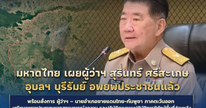 ผู้ว่าฯ สุรินทร์ ศรีสะเกษ อุบลฯ บุรีรัมย์ อพยพประชาชนแล้ว
