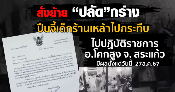 รองผู้ว่าฯ สระแก้ว เซ็นคำสั่งย้ายปลัดอำเภอกร่างใช้ปืนจี้เด็กเสิร์ฟร้านเหล้าและทำร้ายร่างกายบาดเจ็บสาหัส ออกนอกพื้นที่ พร้อมตั้งคณะกรรมการตรวจสอบข้อเท็จจริง