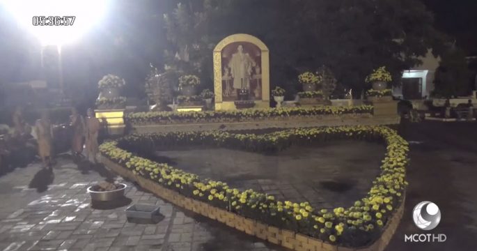 พระภิกษุ สามเณร วัดเจดีย์หลวง จังหวัดเชียงใหม่ ติดตั้งพระบรมฉายาลักษณ์ และร่วมปลูกดอกดาวเรืองกว่า 2,000 ต้น ถวายความอาลัยในหลวงรัชกาลที่ 9
