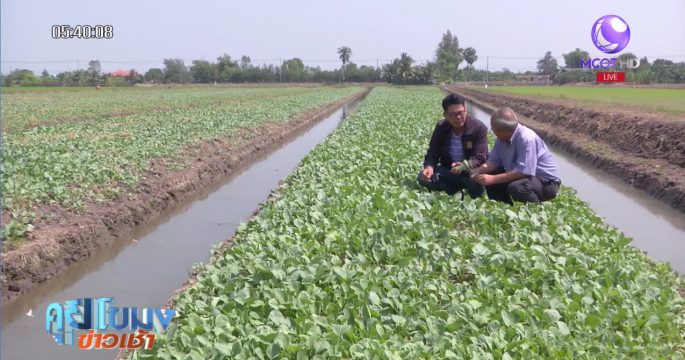 เกษตรกรในอำเภอบางเลน จังหวัดนครปฐม เข้าร่วมโครงการลดพื้นที่นาปรัง โดยเลือกปลูกคะน้า ซึ่งเพียงรอบการผลิตเดียว มีรายได้มากกว่าการขายข้าว