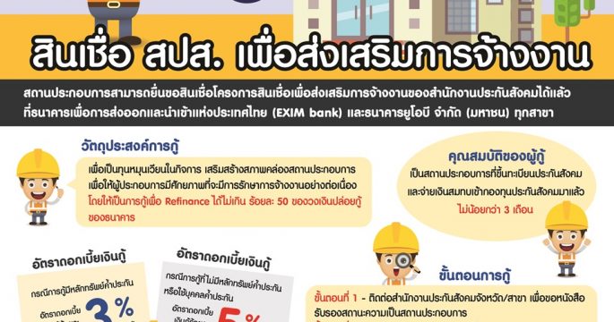 สปส.ร่วมธนาคาร จัดโครงการสินเชื่อเพื่อส่งเสริมการจ้างงานให้สถานประกอบการที่ได้รับผลกระทบจากโควิด-19 เบื้องต้นมี 3 ธนาคารเข้าร่วมโครงการ