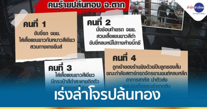 เร่งแกะรอยตามล่าอีก 2 โจรบุกปล้นร้านทองกลางเมืองตาก ส่วน 2 คนที่จับได้ พบมีหมายจับคดีปล้นทอง 182 บาท