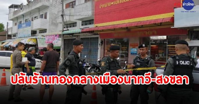 เหตุคนร้ายใช้อาวุธปืนสงครามบุกปล้นร้านทองกลางตลาดนาทวี ได้ทองไปเกือบหมดร้าน น้ำหนักไม่ต่ำกว่า 1 พันบาท มูลค่ากว่า 22 ล้านบาท