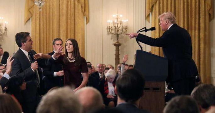 ทำเนียบขาวสั่งระงับบัตรผ่านของนายจิม อาคอสตา นักข่าวทำเนียบขาวของซีเอ็นเอ็น หลังจากปะทะคารมกับประธานาธิบดีโดนัลด์ ทรัมป์เมื่อวันก่อน
