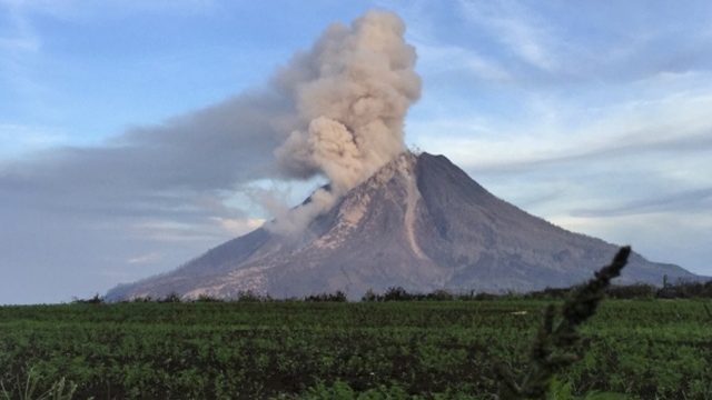 นักภูเขาไฟวิทยาของอินโดนีเซียแจ้งว่า ภูเขาไฟซีนาบุง ทางตะวันตกของประเทศปะทุครั้งใหม่ในวันนี้ พ่นเถ้าร้อนสูงขึ้นไปในอากาศถึง 1 กิโลเมตร