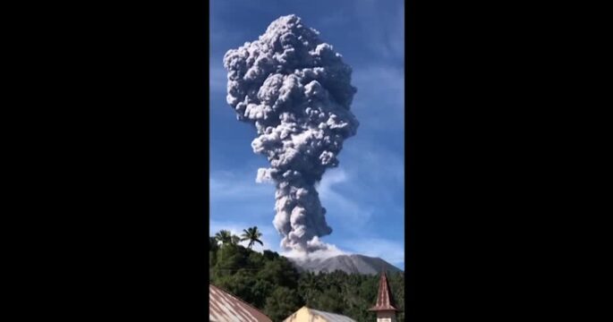 ภูเขาไฟอิบู (Ibu) บนเกาะฮัลมาเฮราทมางตะวันออกของอินโดนีเซียเกิดปะทุขึ้นมาอีกครั้งในวันนี้ พ่นเถ้าถ่านเป็นเมฆลอยขึ้นไปบนฟ้าสูง 5 กิโลเมตร