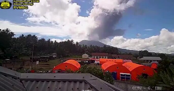 ภูเขาไฟ “อิบู” ของอินโดนีเซียเกิดปะทุขึ้นอีกครั้งในวันนี้ พ่นลาวาสีแดงเจิดจ้าและก้อนหินขึ้นสู่ท้องฟ้าในตอนกลางคืน