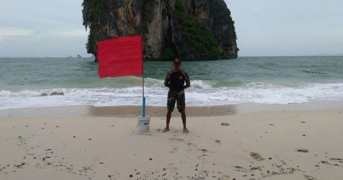 กระบี่ 17 มิ.ย.- อช.หาดนพรัตน์ธาราฯ ปักธงแดงเตือนนักท่องเที่ยวงดเล่นน้ำในระยะนี้ เนื่องจากคลื่นลมแรง ด้าน ปภ.ห่วงน้ำป่าหลาก-ดินถล่ม ย้ำประชาชนบริเวณเชิงเขาเฝ้าระวัง นายวรพจน์ ล้อมลิ้ม หัวหน้าอุทยานแห่งชาติหาดนพรัตน์ธารา-หมู่เกาะพีพี จังหวัดกระบี่ สั่งเจ้าหน้าที่อุทยานฯ ประจำเกาะปอดะ และตามแหล่งท่องเที่ยวทางทะเลในพื้นที่ ต.อ่าวนาง อ.เมือง จ.กระบี่ ปักธงแดงเตือนนักท่องเที่ยวงดลงเล่นน้ำทะเลหาดเกาะปอดะ และหน้าหาดถ้ำพระนาง เพื่อความปลอดภัย เนื่องจากลมมรสุมตะวันตกฉียงใต้พัดผ่านฝั่งทะเลอันดามัน ส่งผลให้คลื่นลมแรงพัดคลื่นสูงกว่า 2 เมตร ส่วนเรือหางยาวบริการนำเที่ยวขอให้หยุดชั่วคราวเช่นกัน นอกจากนี้ตามชายหาดนพรัตน์ธาราและหาดอ่าวนาง มีเรือเข้าจอดหลบคลื่นลมมรสุมตั้งแต่วานนี้ ด้านนายไพศาล ขุนสี หัวหน้าป้องกันและบรรเทาสาธารณภัยจังหวัดกระบี่ แจ้งเตือนประชาชนพื้นที่เสี่ยงภัยทั้ง 8 อำเภอ โดยเฉพาะเชิงเขาพนมเบญจาระวังน้ำป่าไหลากและดินถล่ม เนื่องจากฝนตกสะสมในระยะนี้ ส่วนทะเลอันดามันมีคลื่นสูง 2 – 4 เมตร เรือเล็กงดออกจากฝั่งไปถึงวันที่ 20 มิถุนายนนี้.-สำนักข่าวไทย