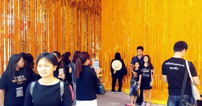 ประชาชนหลั่งไหลเข้าชมความงดงามของดอกไม้สดนานาพันธุ์ที่ถูกเนรมิตขึ้นในกิจกรรม “ดอกไม้เพื่อพ่อ” บริเวณปากคลองตลาด
