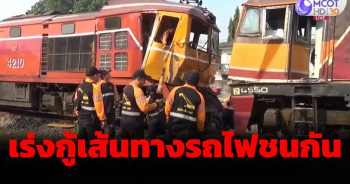 เจ้าหน้าที่การรถไฟแห่งประเทศไทย เร่งเคลียร์เส้นทางรถไฟชนกันที่สถานีปากท่อ จ.ราชบุรี ขณะที่สาเหตุยังรอผลสอบที่ชัดเจน ด้าน ก.คมนาคม สั่งการรถไฟฯ เยียวยาช่วยเหลือผู้บาดเจ็บเต็มที่