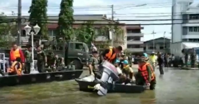 นครศรีธรรมราช 5 ม.ค.- พล.ท.พรศักดิ์ พูลสวัสดิ์ แม่ทัพภาคที่ 4 นายจำเริญ ทิพญพงศ์ธาดา ผู้ว่าฯ นครศรีธรรมราช ลงพื้นที่ อ.ปากพนัง จ.นครศรีธรรมราช นั่งเรือท้องแบนไปตามลำน้ำแม่น้ำปากพนัง เพื่อไปเยี่ยมเยียนพี่น้องประชาชน ที่บ้านเกาะชัย ที่ได้รับผลกระทบจากพายุปาบึก ที่พัดขึ้นชายฝั่งเมื่อวันที่ 4 มกราคม ที่ผ่านมา เนื่องจากเป็นพื้นที่ที่รถยนต์ไม่สามารถเข้าถึง เพราะมีน้ำท่วมขัง เนื่องจากมีน้ำทะเลหนุนสูง มีพี่น้องประชาชนในพื้นที่ที่ได้รับผลกระทบ มารอรับสิ่งของช่วยเหลือกว่า 50 คน จากนั้น เดินทางต่อไปยัง ประตูระบายน้ำอุทกวิภาชประสิทธิ เพื่อมอบสิ่งของช่วยเหลือผู้ประสบภัย ให้แก่พี่น้องประชาชนในพื้นที่ ต.หูล่อง พร้อมสอบถามความเสียหายเบื้องต้น เพื่อประเมินสถานการณ์ในการให้การช่วยเหลือเยียวยาและฟื้นฟูต่อไป จากนั้น เดินทางไปยังแหลมตะลุมพุก ซึ่งเป็นพื้นที่ที่ได้รับความเสียหาย จากพายุปลาบึกเป็นอย่างมาก เพื่อเยี่ยมเยียนให้กำลังใจพี่น้องประชาชนที่ประสบภัย พูดคุยให้กำลังใจ และแจกจ่ายข้าวกล่องจากโรงครัวพระราชทานให้แก่พี่น้องประชาชน ..- สำนักข่าวไทย