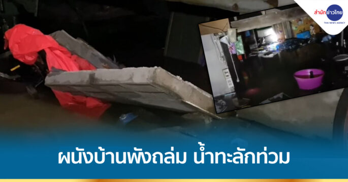 จ.นนทบุรี ฝนถล่มหนัก สองสามีภรรยาวิ่งหนีตาย ผนังบ้านต้านแรงดันน้ำไม่ไหวพังถล่ม น้ำทะลักเข้าบ้าน ข้าวของ เครื่องใช้ไฟฟ้า ถูกน้ำซัดไปคนละทิศละทาง