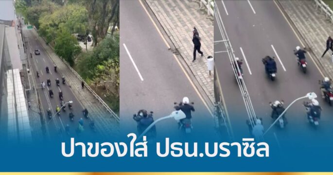 ประธานาธิบดีบราซิลถูกปาของใส่ขณะขี่มอเตอร์ไซค์