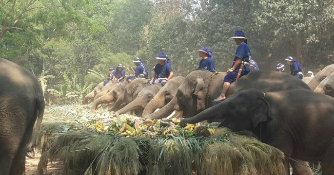 ปางช้างแม่สา จ.เชียงใหม่ จัดงานวันเกิดให้ พังน้ำทิพย์ อายุ 5 ปี พังสร้อยฟ้า อายุ 4 ปี และพี่น้องอีก 5 เชือก ที่มีพ่อพันธุ์เชือกเดียวกัน มาร่วมปาร์ตี้วันเกิด โดยจัดเค้กผลไม้ที่ชอบ พากันแย่งกันกินเอร็ดอร่อย