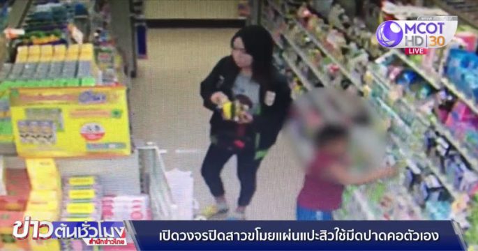 เปิดวงจรปิด สาวขโมยแผ่นแปะดูดสิวถูกจับได้ใช้มีดปาดคอตัวเอง อาการสาหัส