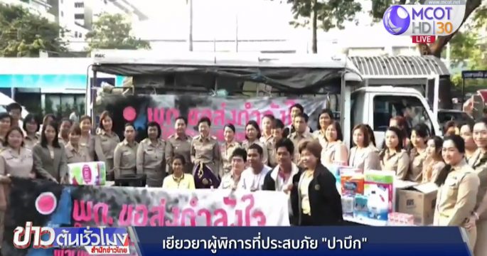 กรมส่งเสริมและพัฒนาคุณภาพชีวิตคนพิการ ร่วมกับหลายหน่วยงาน จัดขบวนรถขนส่งเครื่องอุปโภค-บริโภค ช่วยเหลือผู้ประสบภัยจากพายุปาบึก