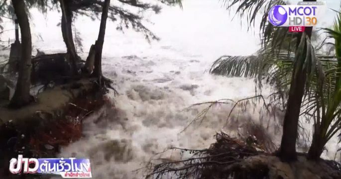 ฝั่งทะเลตะวันออก ที่จังหวัดระยอง คลื่นทะเลสูงเกือบ 3 เมตร โหมพัดกระหน่ำซัดเข้าใส่ตลอดแนวชายฝั่ง ตลอดระยะทางกว่า 100 กิโลเมตร ระดับน้ำทะเลสูงกว่าปกติ