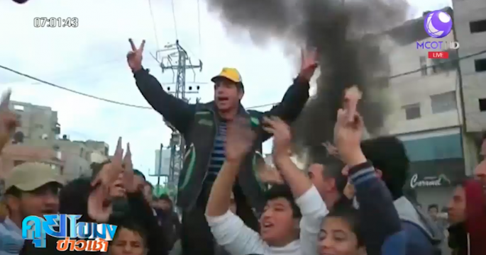 ปาเลสไตน์ประท้วงต่อต้านประธานาธิบดีโดนัลด์ ทรัมป์ของสหรัฐ ประกาศยอมรับเยรูซาเล็มเป็นเมืองหลวงอิสราเอลและแจงแผนย้ายสถานทูตจากกรุงเทลอาวีฟไปเยรูซาเล็ม มีผู้บาดเจ็บอย่างน้อย 31 คน