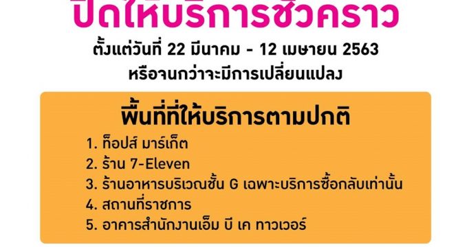 ศูนย์การค้าเครือเอ็มบีเคปิดให้บริการชั่วคราว ร่วมป้องกันโควิด-19
