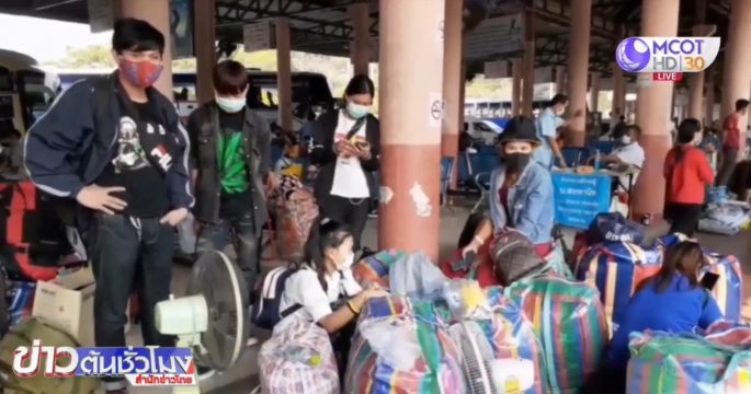 แรงงานลาวรอกลับประเทศ หลังไทยปิดด่านสกัดโควิด-19 ทำให้จุดผ่านแดนหลายจังหวัดมีแรงงานตกค้างจำนวนมาก รวมถึงสถานีขนส่งรถโดยสารตามจังหวัดต่างๆ