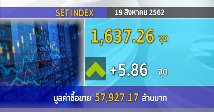 หุ้นไทยบวก 16.39 จุด ตามตลาดต่างประเทศ คลายกังวลสถานการณ์ฮ่องกง-Brexit