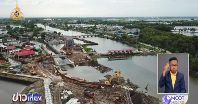 เจ้าหน้าที่ชลประทานเร่งปิดรอยรั่วพนังกั้นน้ำเค็มของสถานีสูบน้ำที่กำลังก่อสร้างในพื้นที่จังหวัดสมุทรปราการ ให้เสร็จในเวลา 18.00 น.วันนี้ หลังน้ำทะลักเข้าท่วมบ้าน 40 ครัวเรือน