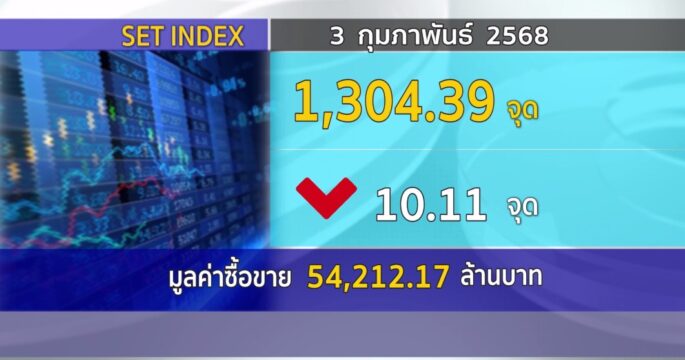 SET ปิดวันนี้ที่ 1,304.39 จุด ลดลง 10.11 จุด (-0.77%) มูลค่าการซื้อขาย 54,272.58 ล้านบาท