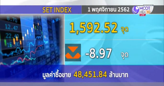 ตลาดหลักทรัพย์ปิดวันนี้ที่ระดับ 1,044.19 จุด ลดลง 3.96 จุด (-0.38%) มูลค่าการซื้อขาย 61,601.05 ล้านบาท การซื้อขายหุ้นวันนี้ ดัชนีหุ้นไทยเคลื่อนไหวในแดนลบเป็นส่วนใหญ่ โดยทำระดับสูงสุด 1,048.80 จุด และทำระดับต่ำสุด 1,010.60 จุด