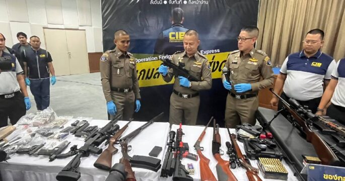 10 มิ.ย. – ตำรวจสอบสวนกลาง ปิดล้อมจับเครือข่ายค้าอาวุธเถื่อนกลางกรุง-ต่างจังหวัด ยึดกระสุนกว่า 3 หมื่นนัด ผู้ต้องหา 12 ราย กองบัญชาการตำรวจสอบสวนกลาง (CIB) โดยกองบังคับการปราบปราม (บก.ป.) นำโดย พล.ต.ต.วิทยา ศรีประเสริฐภาพ ผบก.ป. พร้อมด้วยเจ้าหน้าที่ที่เกี่ยวข้องแถลงข่าวกรณีนำกำลังเจ้าหน้าที่เปิดปฏิบัติการตรวจค้นพื้นที่เป้าหมายในกรุงเทพมหานคร และหลายจังหวัดทั่วประเทศ ตามยุทธการ “Bullet Express : ปิดเกม กระสุนส่งด่วน” สามารถจับกุมผู้ต้องหาได้ 12 ราย พร้อมของกลางอาวุธปืนและเครื่องกระสุนจำนวนมาก สืบเนื่องจากเมื่อวันที่ 21 มีนาคม 2568 สำนักงานตำรวจแห่งชาติเปิดยุทธการ “ธรณีนี้มีชื่อมีแป” เพื่อกวาดล้างกลุ่มผู้มีอิทธิพล แก๊งมาเฟีย และอาชญากรรมร้ายแรงทั่วประเทศ โดยเฉพาะกลุ่มค้าอาวุธปืนและมือปืนรับจ้าง ซึ่งจากปฏิบัติการครั้งนั้น บก.ป. ตรวจค้น 32 จุด จับผู้ต้องหาได้ 16 ราย ยึดอาวุธปืนได้ 23 กระบอก และกระสุน 564 นัด […]
