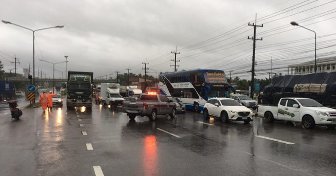 ประจวบคีรีขันธ์ 9 พ.ย.- รถติดหนักจนล้าต้องแวะจอดตามปั๊ม เจอน้ำท่วมสูงแยกบางสะพานผ่านไม่ได้ กระทบขึ้น-ล่องใต้ ท่ามกลางฝนยังตกตลอด ล่าสุดฝั่งขาล่องเริ่มพอไปได้ ส่วนใหญ่เป็นรถใหญ่ นายสุพจน์ เสริมทรัพย์ หัวหน้าหมวดทางหลวงประจวบคีรีขันธ์ เปิดเผยว่า สถานการณ์น้ำท่วมจากฝนตกหนักส่งผลให้รถยนต์ทุกชนิดยังไม่สามารถใช้เส้นทางบนถนนเพชรเกษมทั้ง 4 ช่องการจราจร ช่วงหลัก กม. 384-386 บริเวณสามแยกบางสะพาน เขตเทศบาลร่อนทอง อ.บางสะพาน เนื่องจากมีน้ำท่วมตั้งแต่หน้าปั้ม ปตท.–สะพานวังยาว เป็นระยะทางกว่า 2 กิโลเมตร หลังจากน้ำลดลงแล้วเจ้าหน้าที่จะเร่งตรวจสอบสภาพความแข็งแรงของสะพานวังยาวก่อนเปิดให้รถสัญจรตามปกติ ขณะเดียวกันเส้นทางเบี่ยงเพื่อเดินทางขึ้นล่อง 14 จังหวัดภาคใต้ผ่านถนนสายรองสายบางสะพาน–หนองหัดไท ต.พงศ์ประศาสน์ อ.บางสะพาน ยังมีน้ำท่วมสูงรถเล็กผ่านไม่ได้ ประกอบกับคอสะพานในพื้นที่ อ.บางสะพานน้อย ที่ใช้เดินทางไปถนนเพชรเกษมได้รับความเสียหายจากน้ำกัดเซาะ การจราจรขึ้นล่องภาคใต้ต้องหยุดชะงัก มีรถสะสมจำนวนมากจอดพักบริเวณสถานีบริการน้ำมัน ล่าสุด (18.00 น.) เจ้าหน้าที่เริ่มปล่อยในฝั่งขาล่องใต้แล้ว เนื่องจากน้ำเริ่มลดลง พอที่รถขนาดใหญ่สัญจรได้ มีทั้งรถบรรทุก รถโดยสารปรับอากาศ และรถกระบะ ส่วนรถเล็กคงรอให้น้ำลดลงอีก ขณะที่ฝั่งขาเข้า กทม.น้ำยังสูงต้องปิดการสัญจรไว้ก่อน และฝนยังตกเป็นระยะ ด้านนายยงยุทธ จุลานนท์ ผู้อำนวยการโครงการชลประทานประจวบคีรีขันธ์ […]