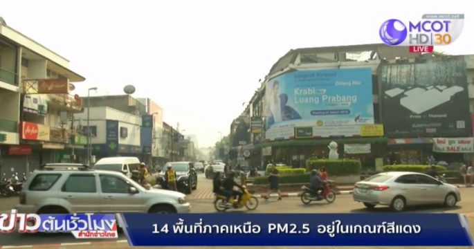 กรมควบคุมมลพิษ เผยมี 14 พื้นที่ภาคเหนือค่า PM2.5 เกินค่ามาตรฐานอยู่ในเกณฑ์สีแดงมีผลกระทบต่อสุขภาพ ส่วนที่เชียงใหม่บางสายการบินต้องยกเลิกเที่ยวบิน และล่าสุด มหาวิทยาลัยเชียงใหม่แจ้งงดการเรียนการสอนเป็นเวลา 2 วัน ตั้งแต่วันนี้