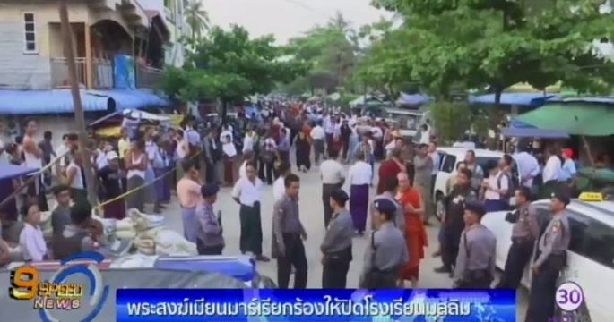 กลุ่มพระสงฆ์ชาตินิยมสุดโต่งในเมียนมาร์ พร้อมกลุ่มผู้สนับสนุน รวมตัวชุมนุมเรียกร้องให้ทางการปิดโรงเรียนมุสลิม 2 แห่งในนครย่างกุ้ง