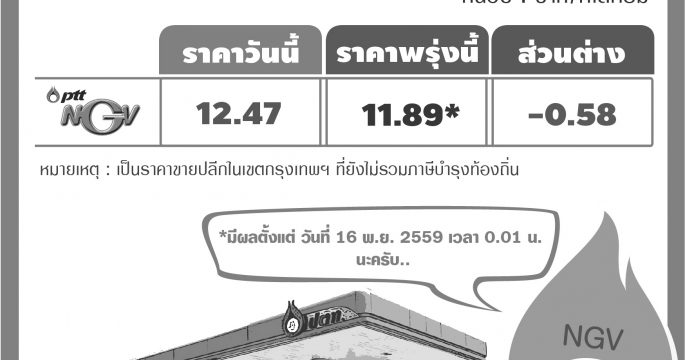 พรุ่งนี้มีข่าวดีราคาเอ็นจีวีลดลง 58 สตางค์/กก. ด้าน ปตท.เจรจา ปิโตรนาสนำเข้าแอลเอ็นจี 1 ล้านตัน/ปี ด้าน ปตท.สผ.เชื่อมั่น รัฐบาลจัดประมูลแหล่ง สัมปทานปิโตรเลียมหมดอายุได้ตามแผนในไตรมาส 3 /60