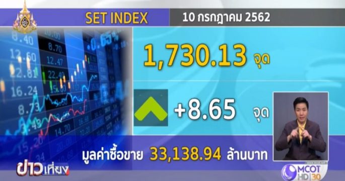 ดัชนีตลาดหลักทรัพย์ฯ ปิดที่ระดับ 1,730.13 จุด เพิ่มขึ้น 8.65 จุด มูลค่าการซื้อขาย 33,138.94 ล้านบาท
