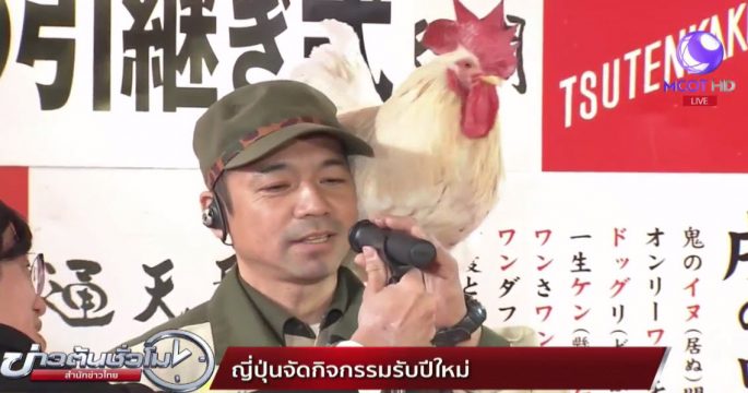 นครโอซากาของญี่ปุ่นจัดกิจกรรมส่งท้ายปีเก่าต้อนรับปีใหม่ โดยมีไก่ 2 ตัว และสุนัข 2 ตัว เป็นตัวแทนของสัตว์ประจำปี