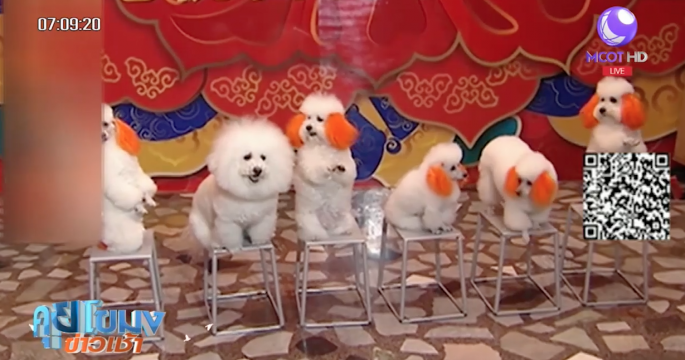 สถานีโทรทัศน์ซีซีทีวีของจีนนำสุนัขพันธุ์พุดเดิ้ลโชว์ความสามารถในรายการพิเศษรับวันตรุษจีนปีจอ