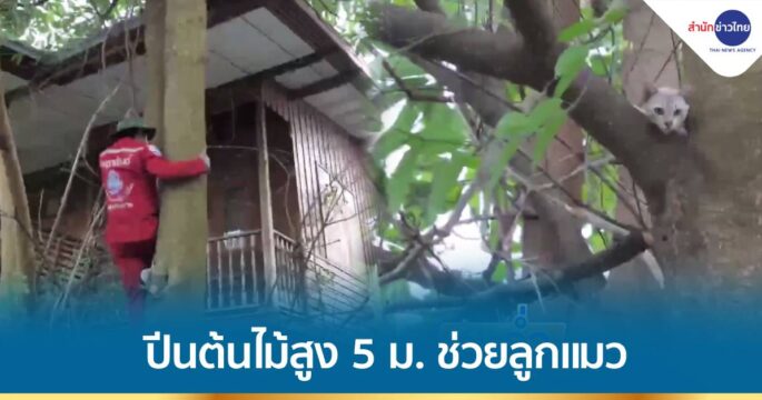 กู้ภัยใจเด็ด ปีนต้นไม้สูง 5 เมตร ช่วยลูกแมว
