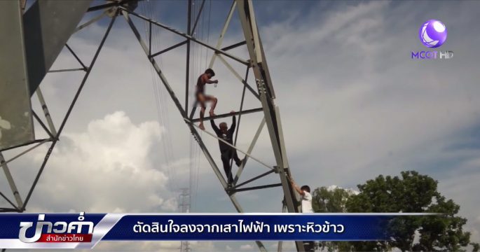 หนุ่มปีนเสาไฟฟ้าแรงสูงที่ถนนอุดรธานี-สกลนคร นาน 47 ชั่วโมง ตัดสินใจยุติความเสี่ยง ไต่ลงจากเสาด้วยตัวเอง เพราะหิวข้าว
