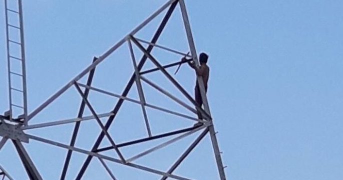 ตาวัย 74 ปี เครียดปีนเสาไฟฟ้าแรงสูง