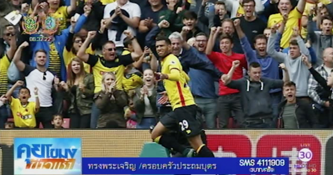 ฟุตบอลพรีเมียร์ ลีก อังกฤษ เตะ 4 คู่ วัตฟอร์ด เปิดบ้านเอาชนะ ปีศาจแดง แมนเชสเตอร์ ยูไนเต็ด 3-1 โดยชนะแมนฯ ยูไนเต็ด เป็นครั้งแรกในรอบ 30 ปี