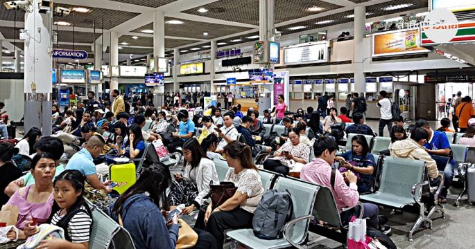 ที่สถานีขนส่งหมอชิตเวลานี้มีประชาชนเตรียมรอเดินทางกันจำนวนมาก ภายในสถานีขนส่งเต็มไปด้วยผู้โดยสารที่นั่งรอขึ้นรถกันเต็มพื้นที่แล้ว เป็นไปตามที่คาดการณ์กันไว้ว่าวันนี้จะมีประชาชนเดินทางออกจากกรุงเทพฯ มากที่สุด
