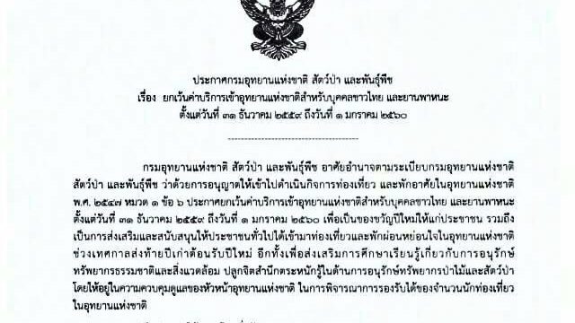 กรมอุทยานฯ เปิดให้เที่ยวอุทยานแห่งชาติฟรี 148 แห่ง ในช่วงเทศกาลปีใหม่ เริ่ม 31 ธ.ค.59-3 ม.ค.60