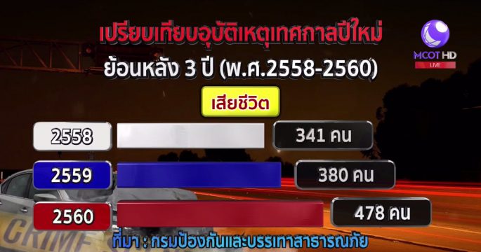 ใกล้เทศกาลปีใหม่ ประชาชนต่างทยอยเดินทางกลับภูมิลำเนา ศปถ.เตรียมพร้อมรับมือภายใต้โครงการ “ขับรถมีน้ำใจ รักษาวินัยจราจร” โดยหากเปรียบเทียบข้อมูลย้อนหลัง 3 ปี จะพบตัวเลขอุบัติเหตุ จำนวนผู้เสียชีวิตและบาดเจ็บเพิ่มขึ้นอย่างมีนัยสำคัญ