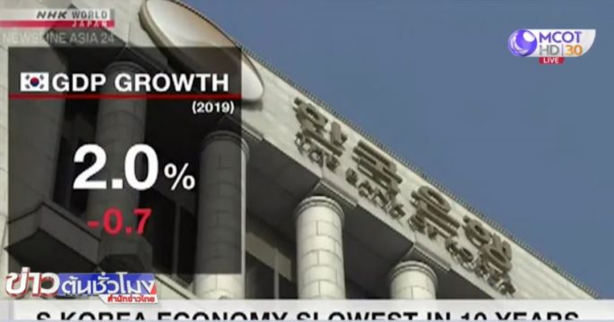 รายงานเบื้องต้นของธนาคารกลางเกาหลีใต้ เผยเศรษฐกิจเกาหลีใต้เมื่อปี 2562 มีการขยายตัวเพียงร้อยละ 2 นับเป็นการขยายตัวทางเศรษฐกิจที่น้อยที่สุดของประเทศในรอบ 10 ปี