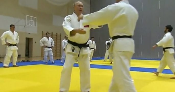 ประธานาธิบดีวลาดิเมียร์ ปูตินลงฝึกซ้อมร่วมกับทีมนักกีฬายูโดของรัสเซียที่ศูนย์ฝึกในเมืองโซชิวันพฤหัสบดี